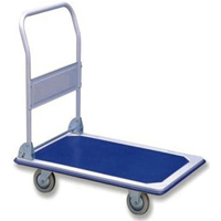 Information: Foldable tubular steel handle with protection edge on platform. Steel riveted platform with PVC/fabric backing cover Sheet. 2 swivel and 2 caster 4" wheels. Ideal for indoor use.